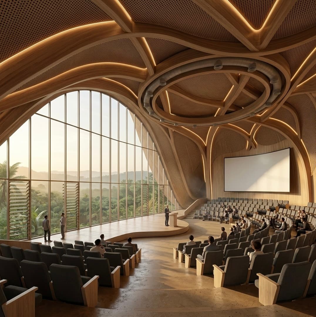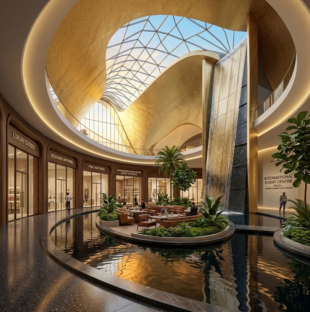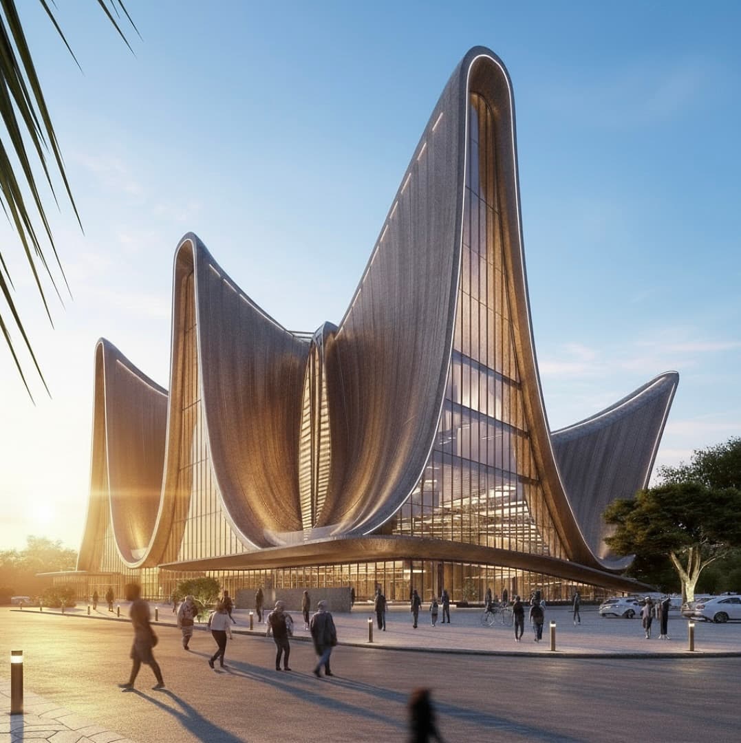 "A landmark that signals arrival, identity, and possibility. The building is conceived as a sculptural form; fluid, continuous, and unmistakable; reflecting movement, gathering, and the energy of collective experience."