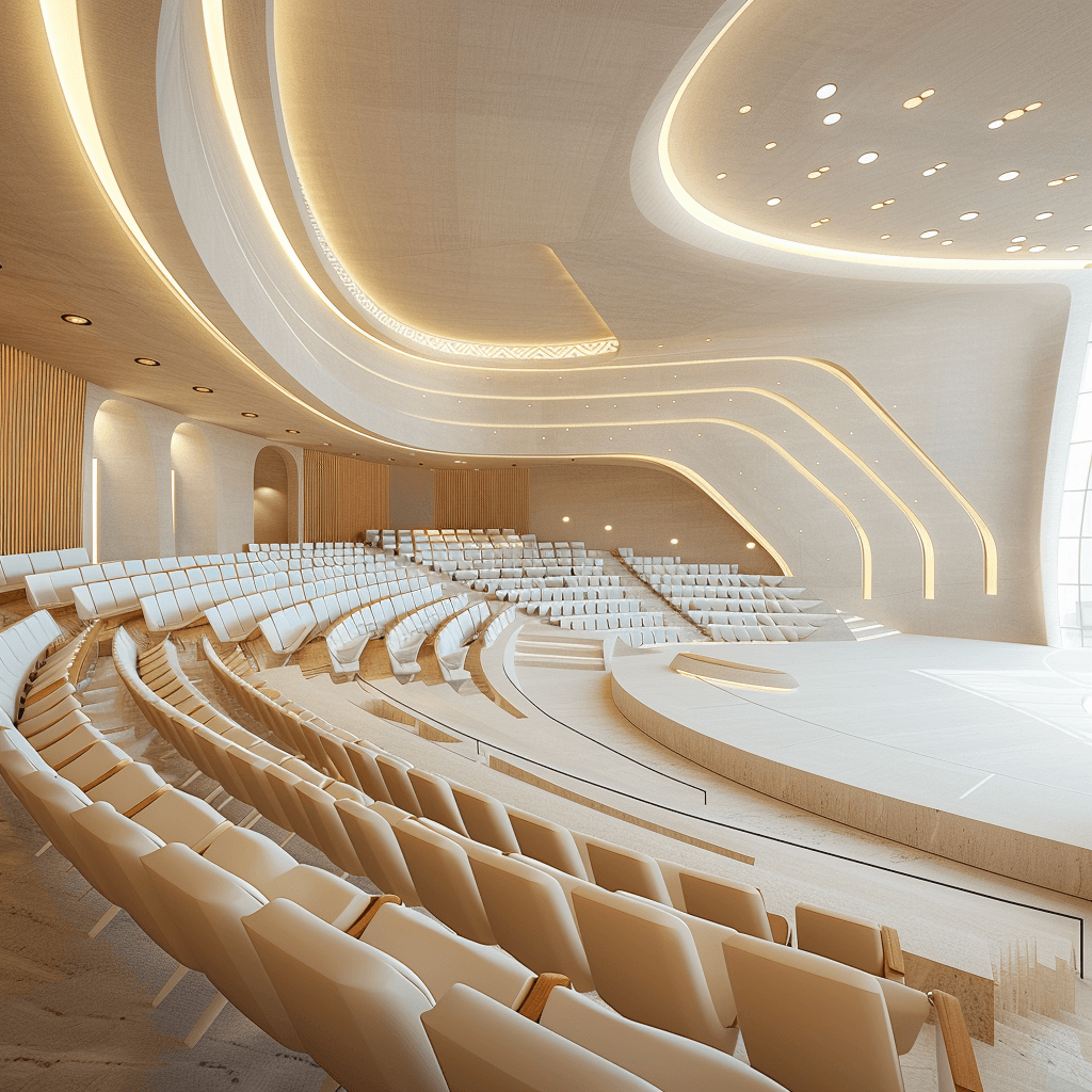 Arrival is intentional. From the forecourt, the building rises as a continuous gesture; drawing people inward. Inside, space expands vertically, light filters through layered surfaces, and movement feels intuitive. Each space transitions fluidly into the next, creating a sequence of moments rather than a single destination.