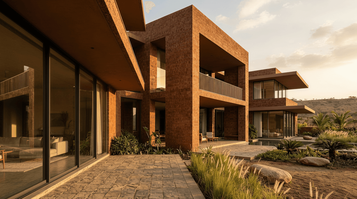 Warm, tactile materials are applied at scale, translating indigenous architectural language into a contemporary vertical form.