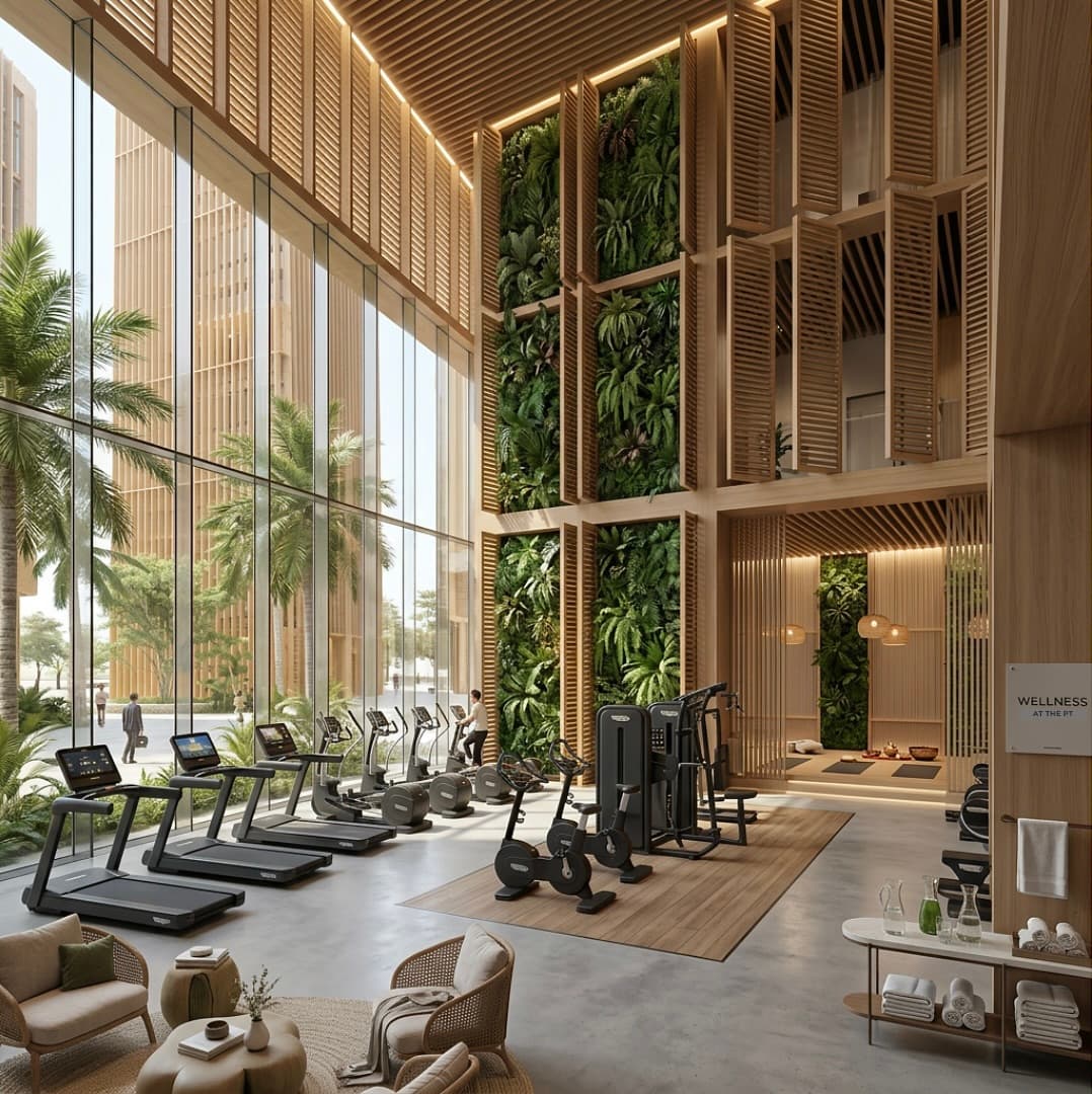 Residential spaces are supported by co-working areas, a café, and wellness facilities, allowing living, working, and social interaction to coexist seamlessly.